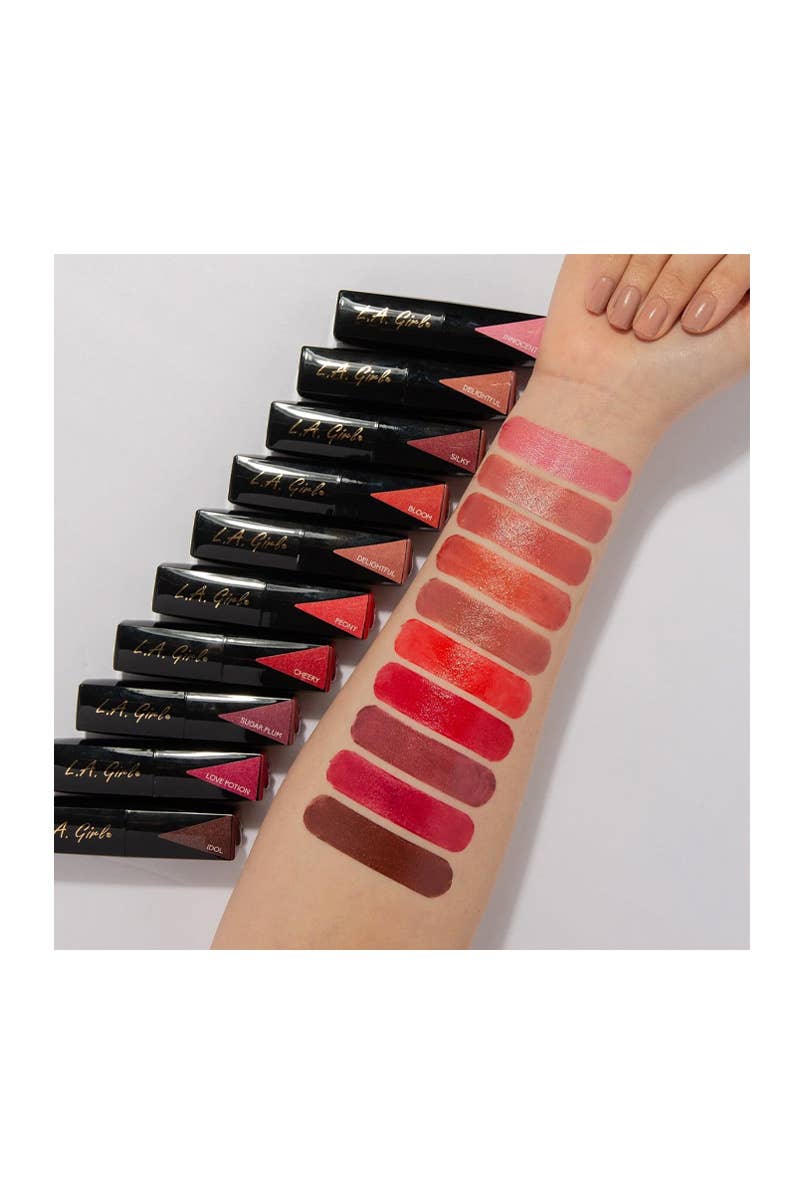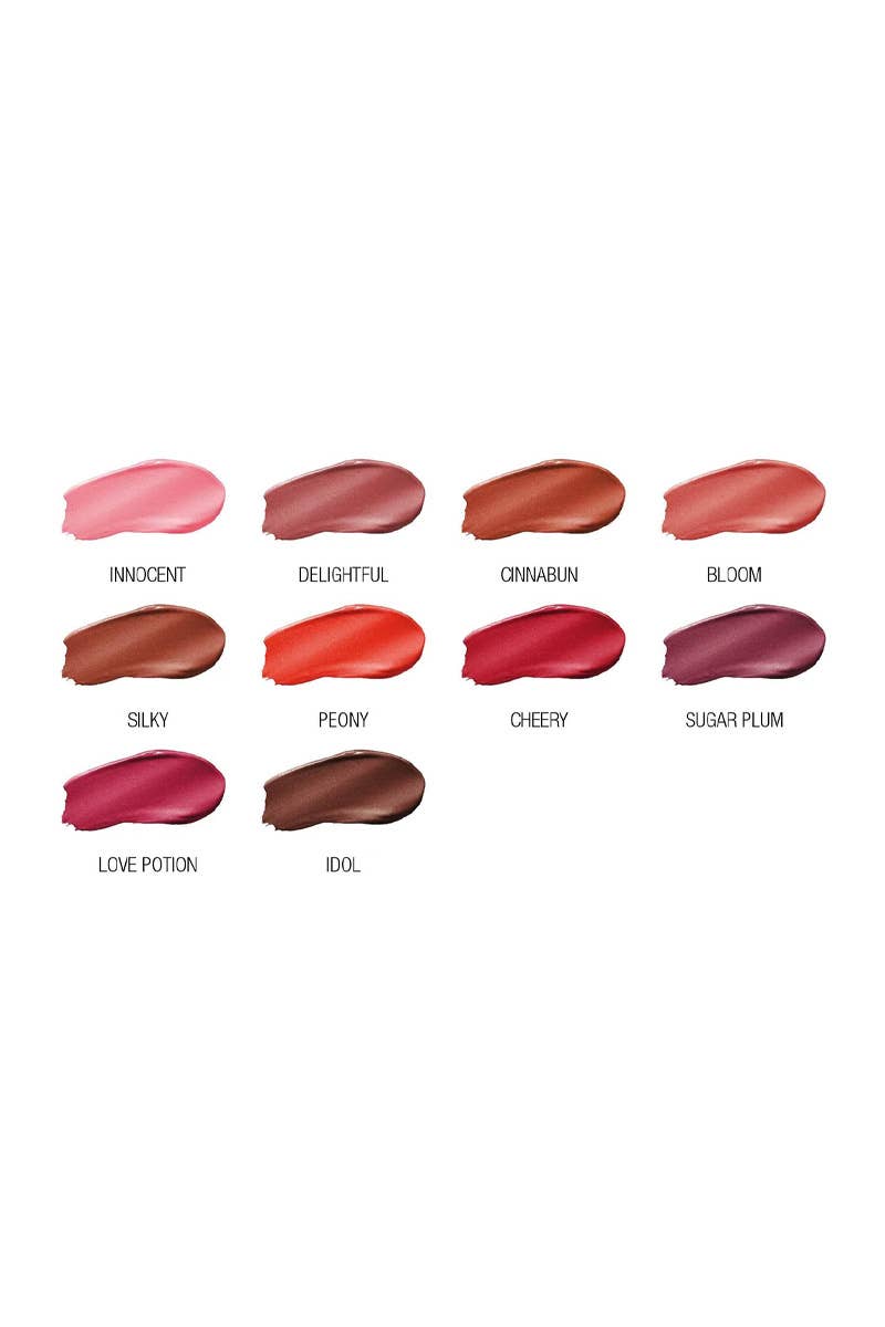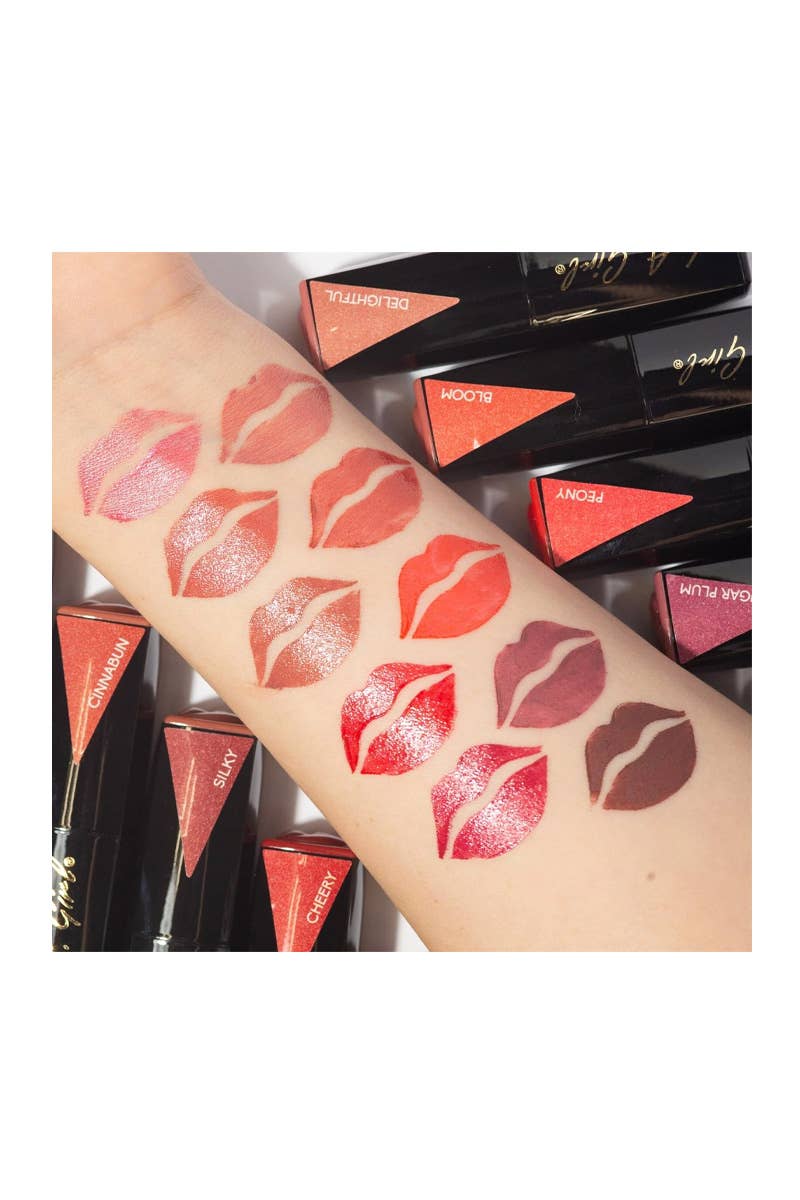 A stunning luxurious, high-shine lip color designed to captivate at first glance. Each lipstick in this collection delivers a subtle shimmer that catches the light beautifully, adding a radiant, extra-glossy finish to the lips. Features a creamy texture that glides on effortlessly, offering a comfortable wear that doesn't compromise on color payoff. Light-reflecting pigments enhance the lips with a dimensional sheen, making them appear fuller and more luminous. The high-pigment formula ensures vivid, yet wearable shimmer, striking a perfect balance. Formulated with a nourishing hybrid-gloss blend, the lipsticks are infused with vitamin E to help keep lips soft, smooth, and hydrated throughout the day.