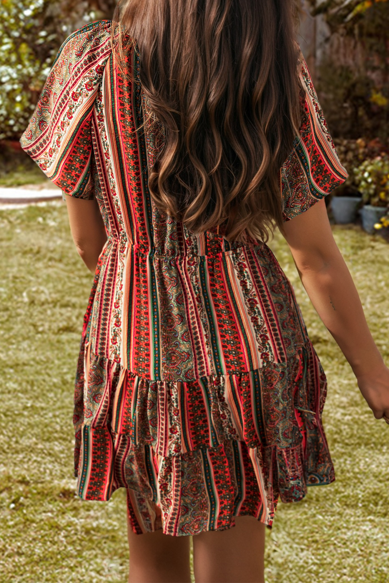 Boho Floral Print Buttoned Ruffle Tiered Dress