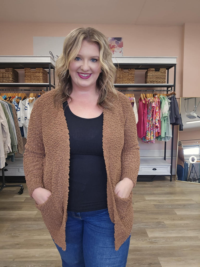 Long Sleeve Popcorn Sweater Cardigan with Pockets