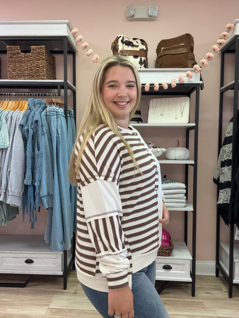 Stripe Stitch Detail Color Block Patched Oversized Top
