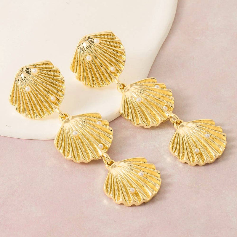 Triple Sea Shell Linked Dangle Earrings