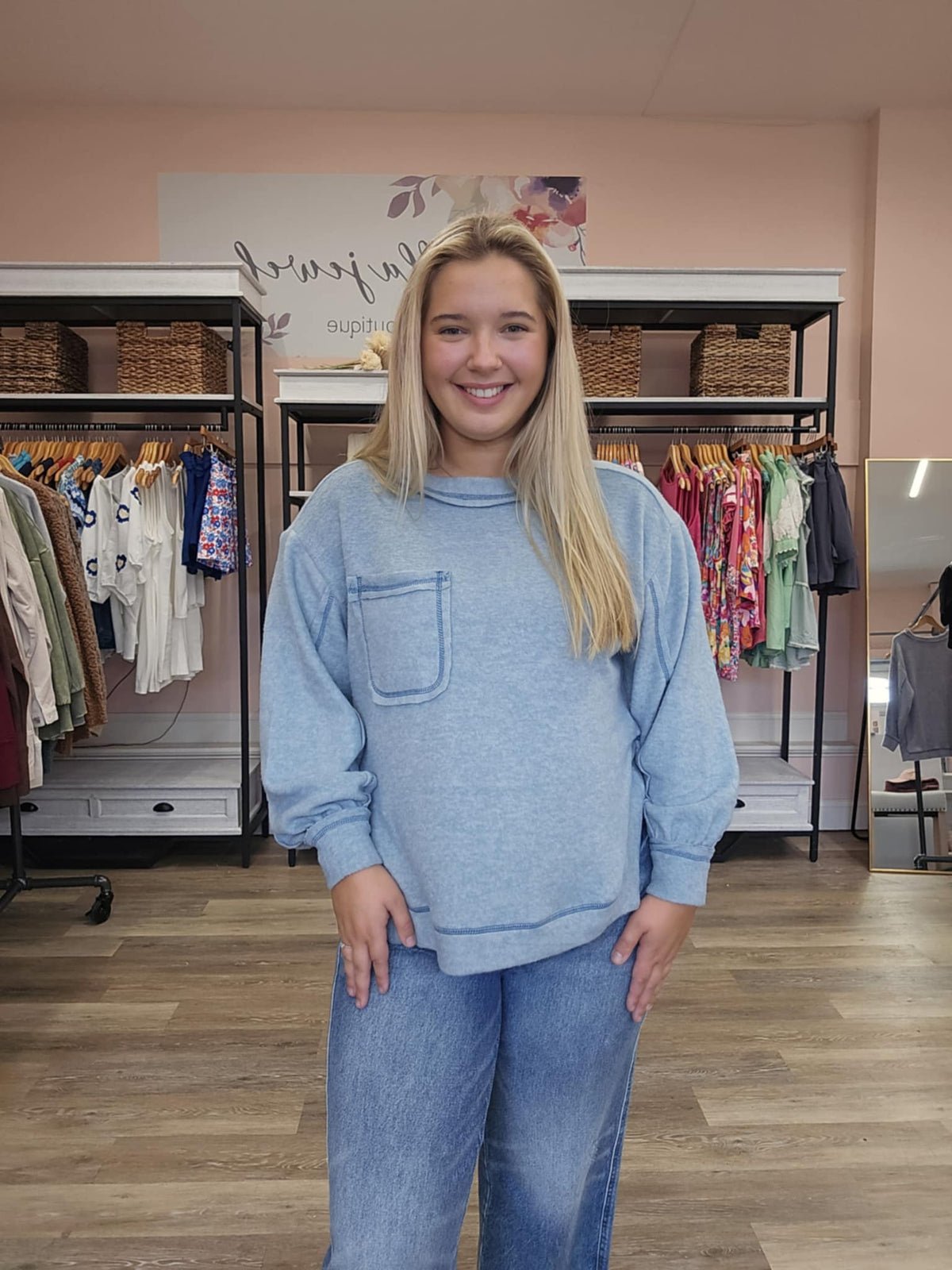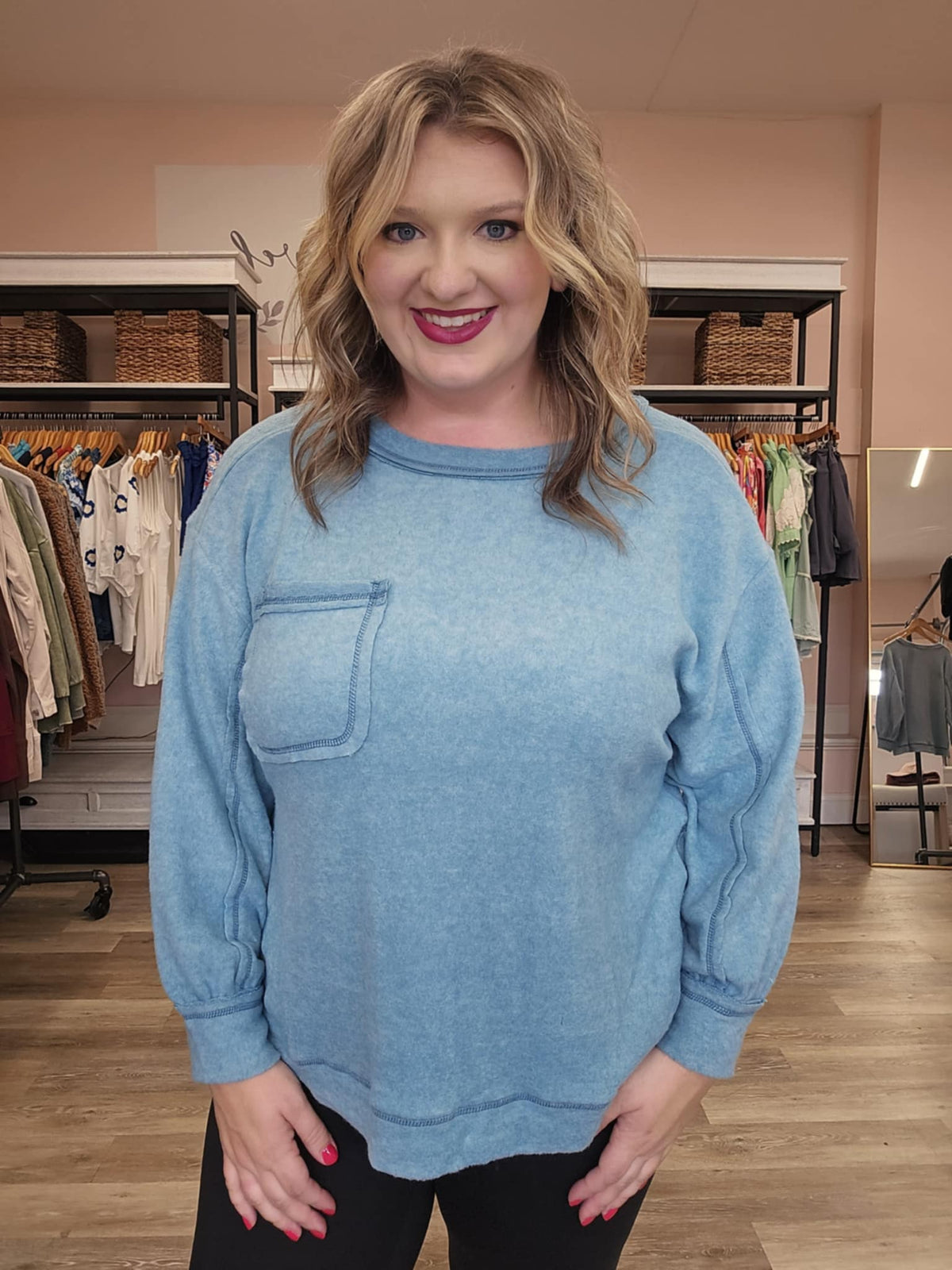 For the woman who loves cozy basics with a polished twist, this brushed hacci hi-low sweater is the kind of piece you’ll want in every color. The round neckline and relaxed fit make it easy to wear, while the hi-low hem adds that little extra detail to keep it stylish and flattering.