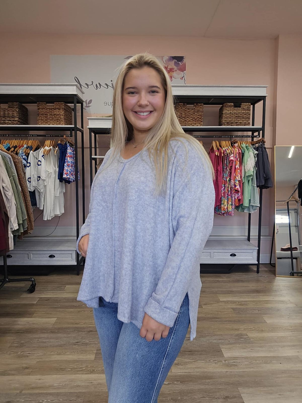 For the woman who wants a cozy sweater that feels as good as it looks, this brushed hacci melange v-neck is about to be your new favorite. The center seam detail and relaxed v-neckline give it that easy, effortless vibe, while the soft melange knit makes it one you’ll want to live in.