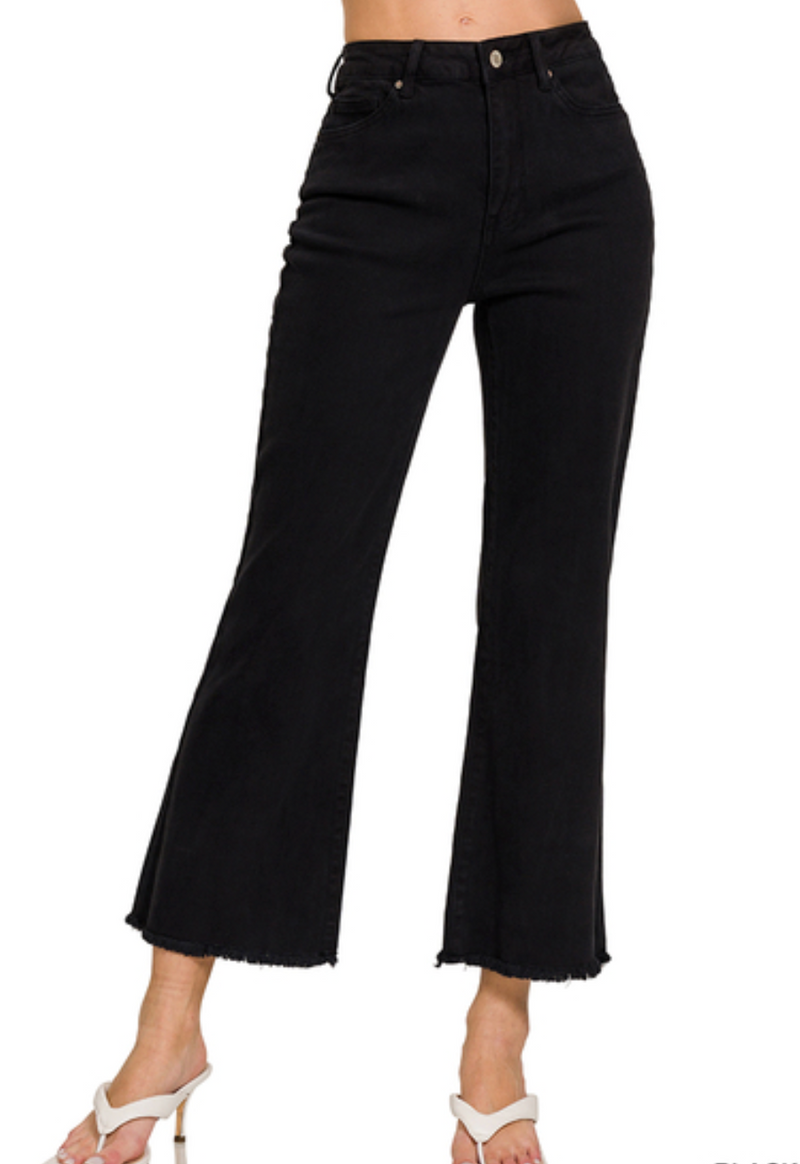 Plus HIgh Rise Straight Raw Hem Crop Denim