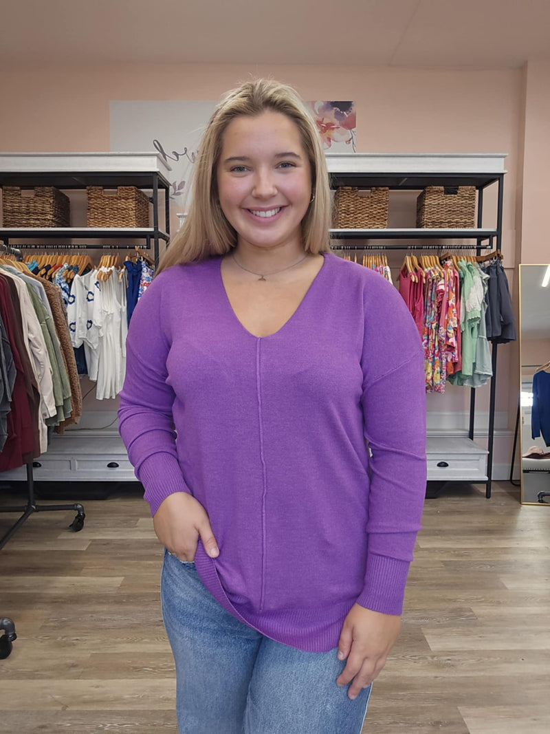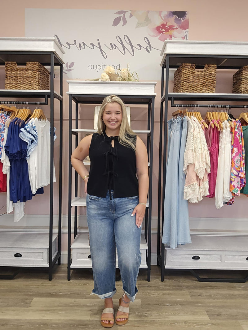 Smocked Bust Buttoned Split V Neck Flow Fit Blouse
