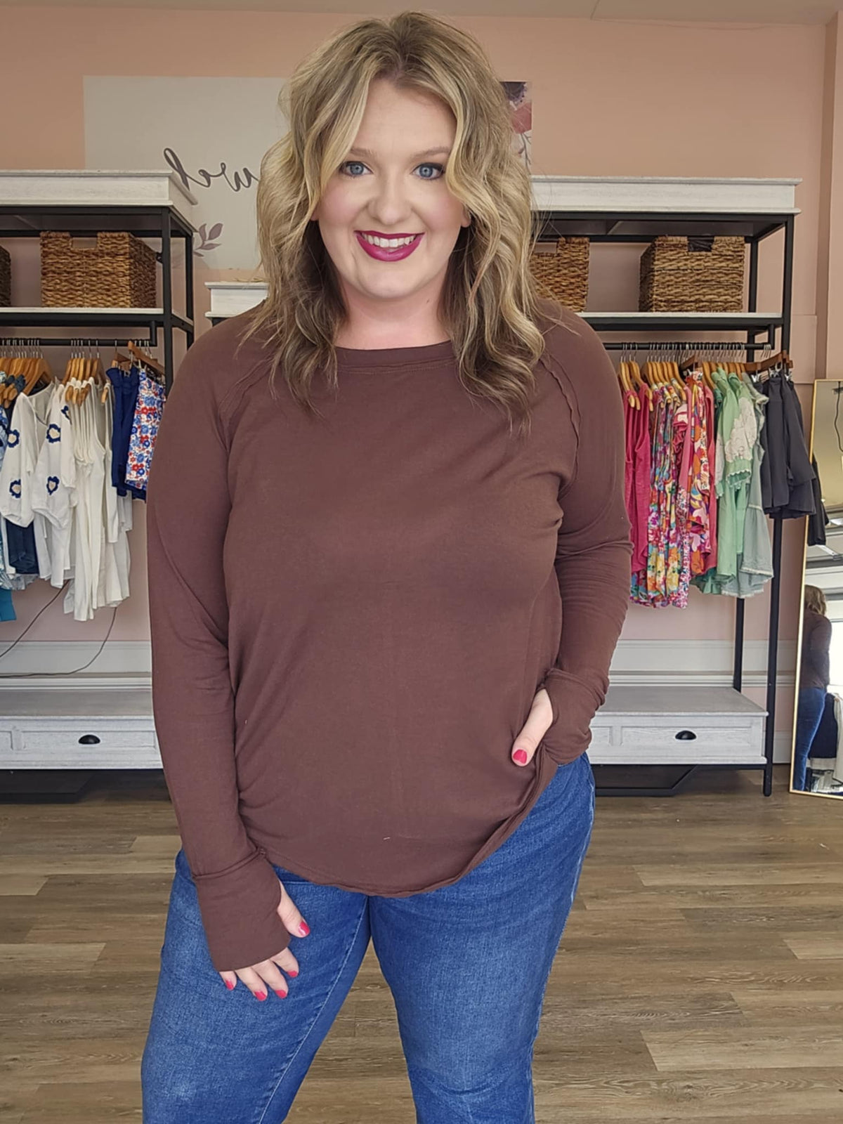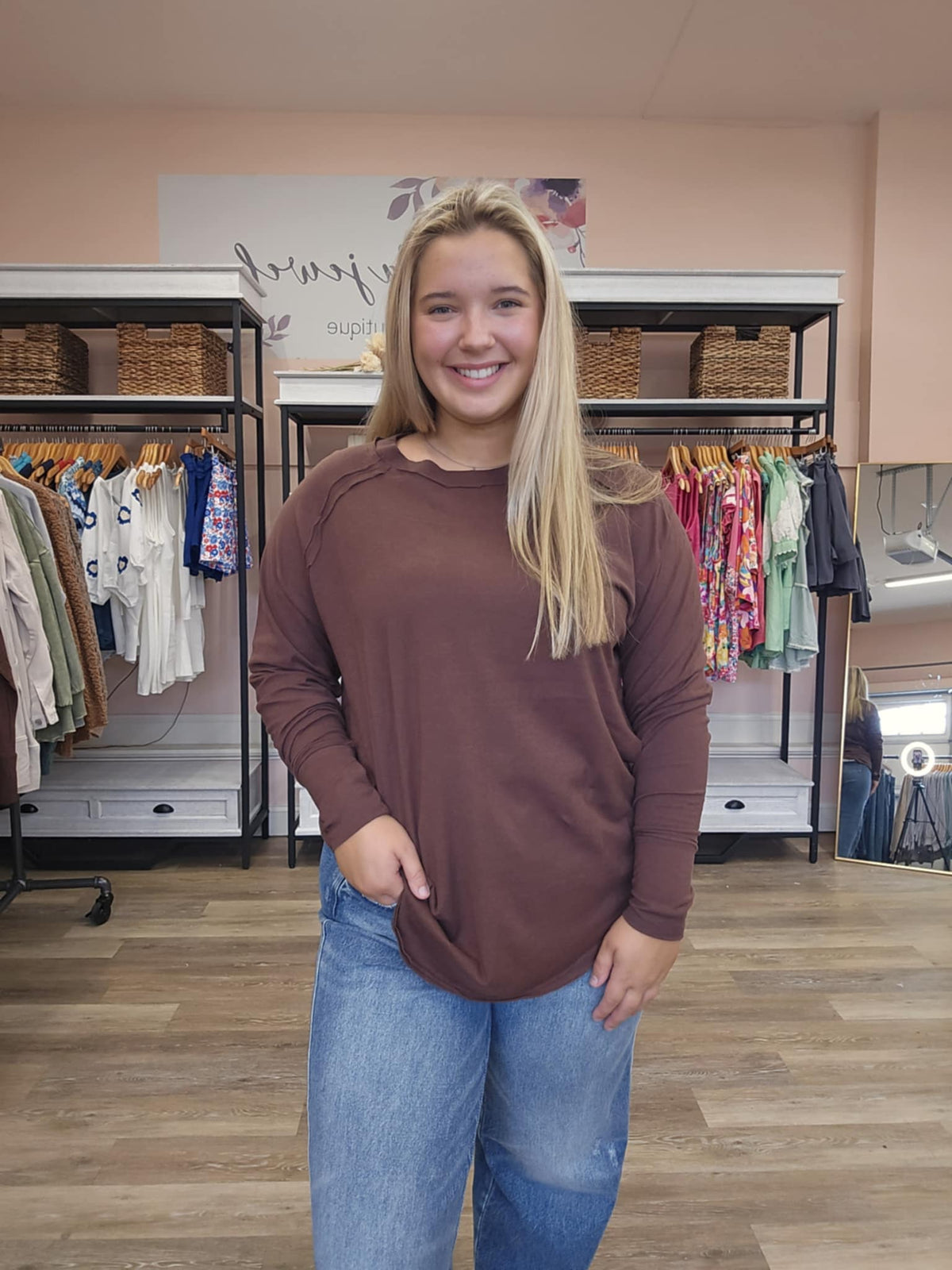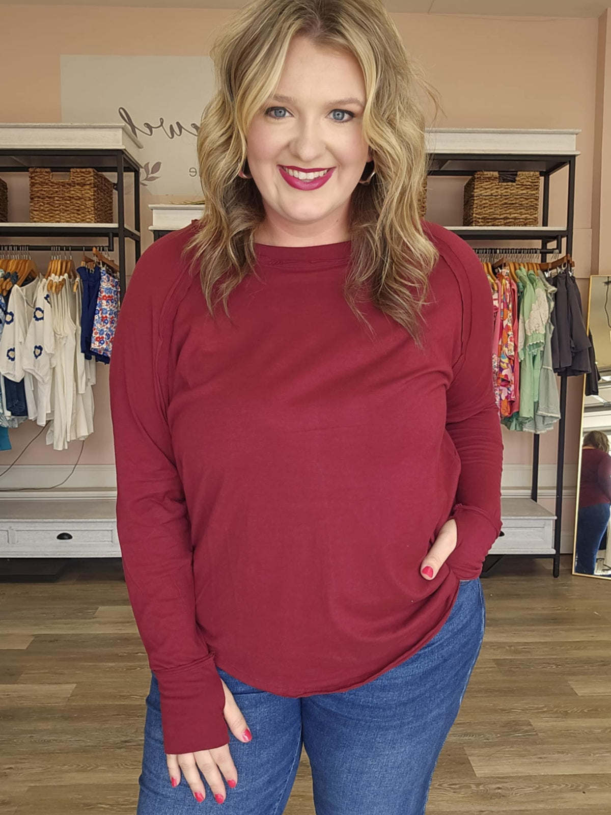 For the girl who lives for that perfect mix of casual comfort and a little extra detail — this raglan sleeve thumbhole top is it. With an easy, relaxed fit and cozy thumbhole sleeves, it’s made for everyday wear while still feeling just a little elevated.