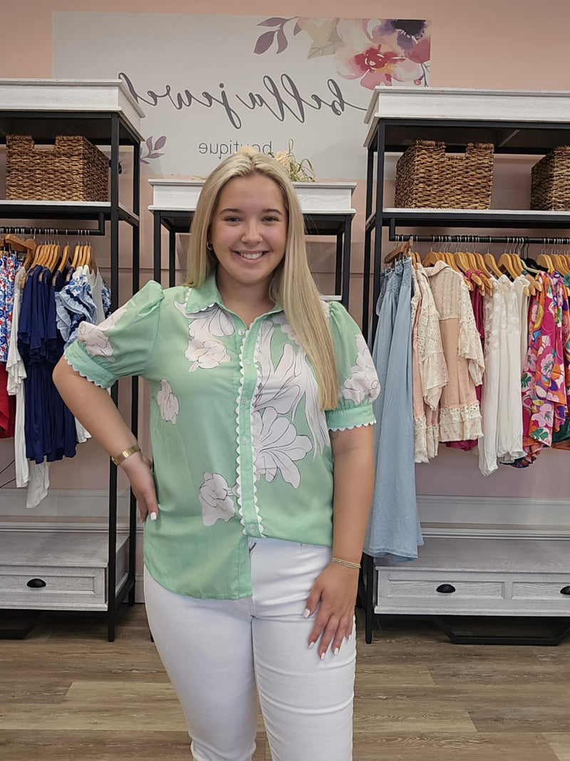 Floral Puff Sleeve Button Up Top