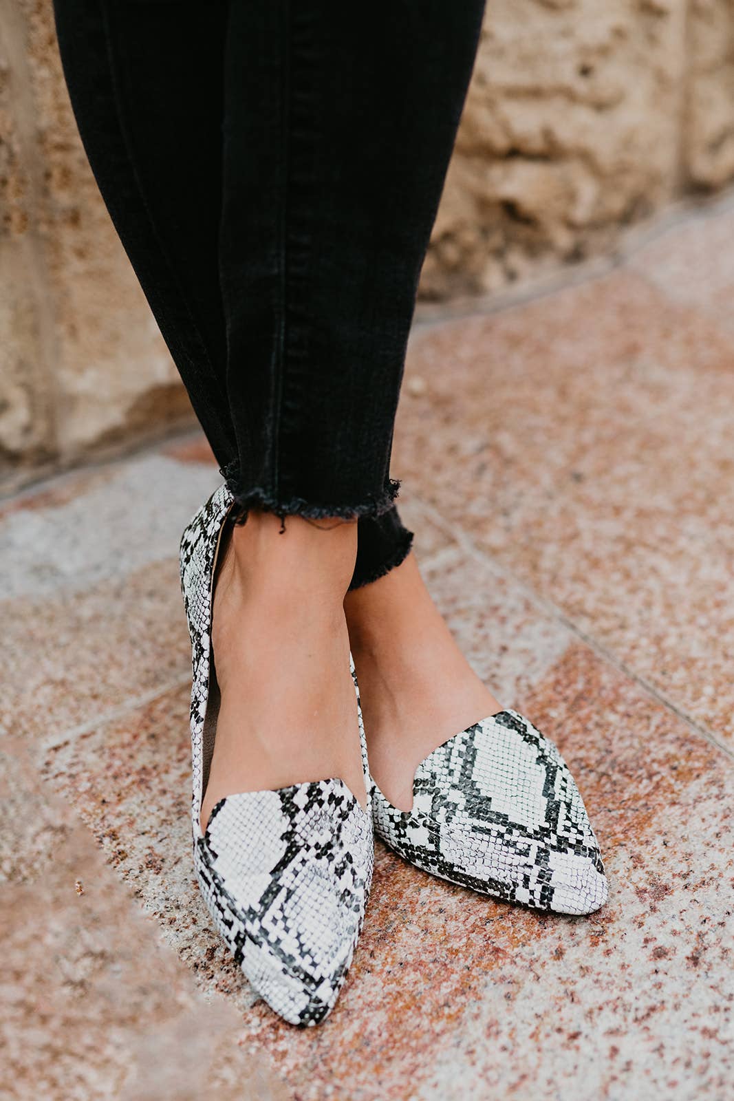 An addition to our new best selling Snakeskin designs. These White Snake print loafer design are crafted in textured faux leather, they’re accented with a bold traditional python pattern to bring out your wild side. Comfortable, playful yet sophisticated. Perfect for work or play