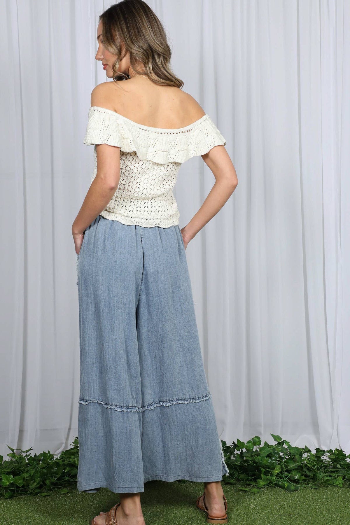 Washed Chambray Denim Crop
